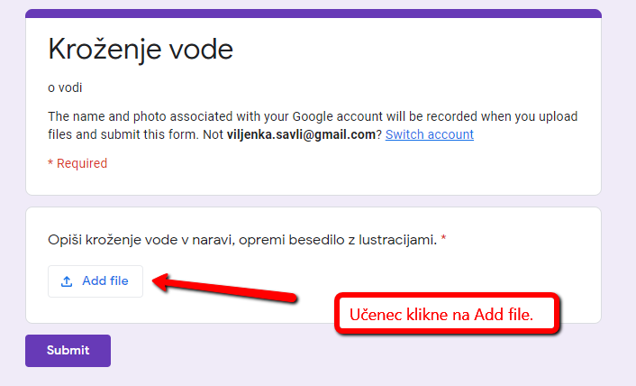 Ustvari nalogo za učenca na določeno temo, vprašanje (npr.: kroženje vode).