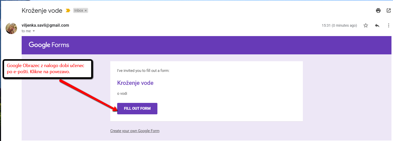 5. Generira se povezava, ki jo učitelj posreduje učencem v spletni učilnici ali po e-pošti.