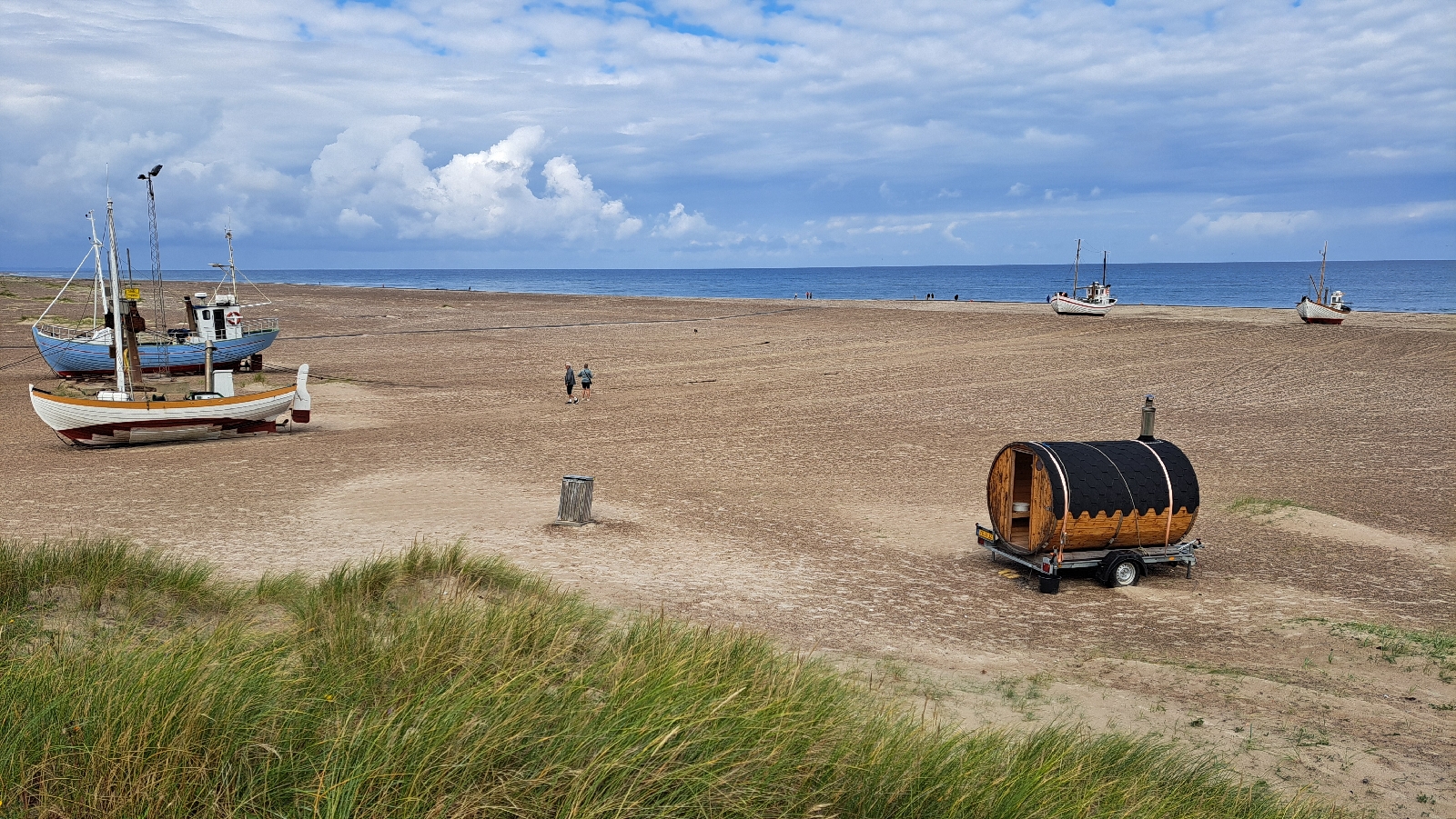 Svetloba ni ista kot zvečer, a čarobnost scene ostaja. Ogledava si mobilno savno, ki ddoatno bogati ponudbo na plaži :).