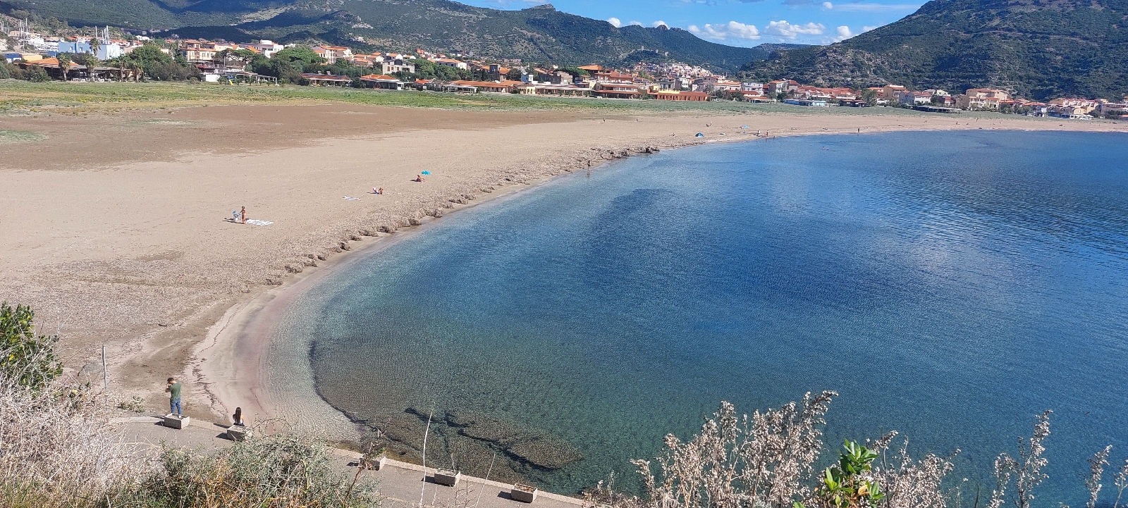 Splezava do stolpa, od koder je prekrasen pogled na veliko ovalno peščeno plažo, ki prijetno zaokroža izgled kraja. Morje je čisto, počasi prehaja iz plitvine v globino.