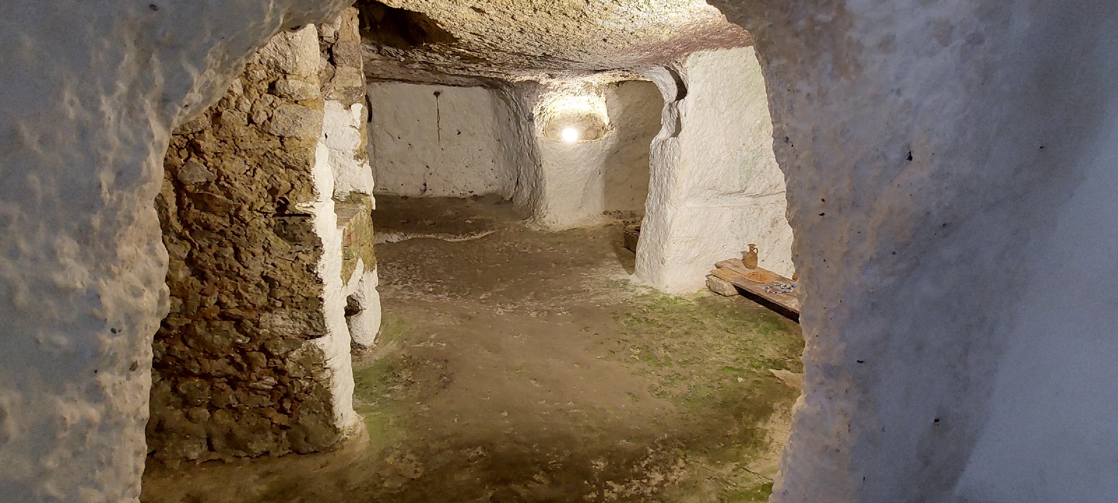 Nadaljujeva pot do bližnjega arheološkega muzeja Villaggio Ipogeo, ki predstavlja majhen ohranjen del podzemnih bivališč, podobno kot v Materi.